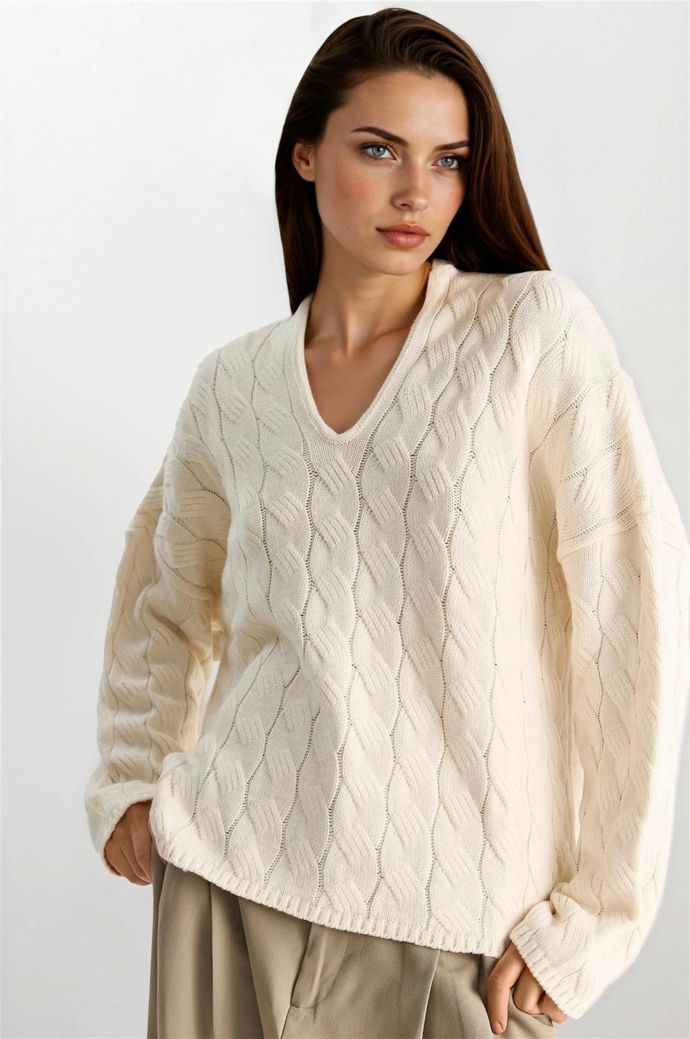 ● ● ● Cream Oversized Knit Sweater with Braided Neckline ● ● ●● composition of the products...