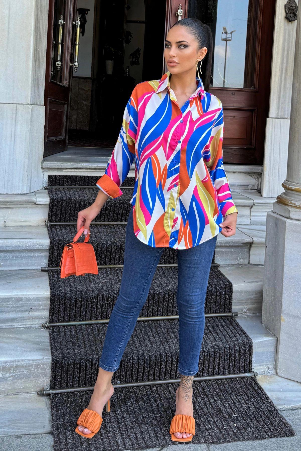 ● ● ● Women's Multicolor Loose Fit Patterned Satin Shirt ● ● ●● composition of the products...
